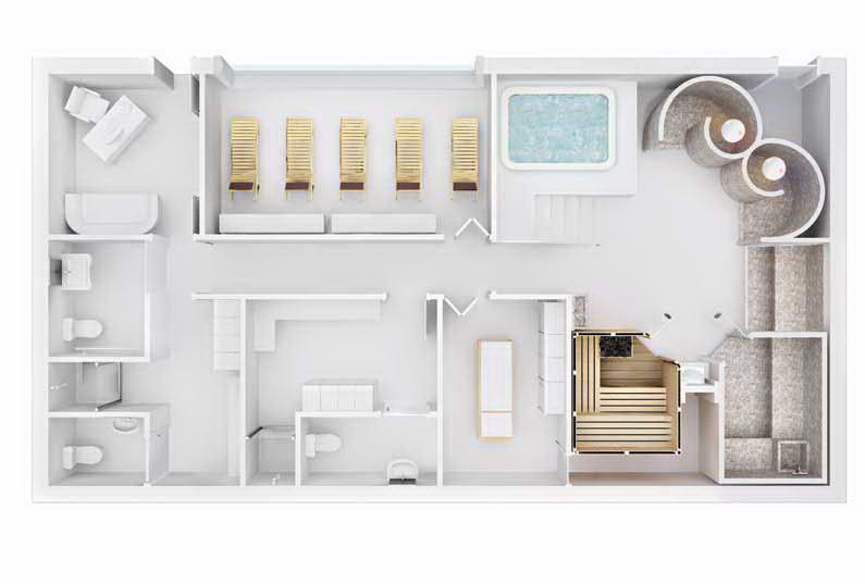 Toto je reprezentativní model vybavení wellnes o podlahové ploše do 100 m2. Naše firma je tu pro vás, aby vám s vybavením maximálně pomohla a vytvořila příjemné a oblíbené wellness centrum.