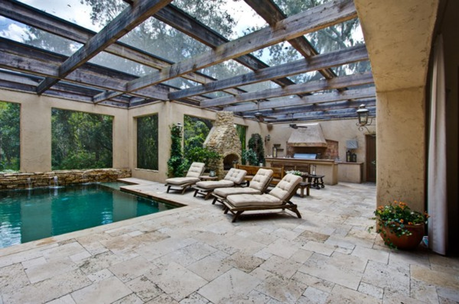 Inspirace nejen pro váš dům. Tyto realizace bazénú uvnitř domu se nám zdály velice krásné na to, abychom se o ně nepodělili s ostatními. Inspirujte se i vy. A pokud byste měli o podobné realizace vnitřních bazénů zájem, určitě vám můžeme pomoci s jejich návrhem v 3D. Realizujeme kompletní wellness prostory.
